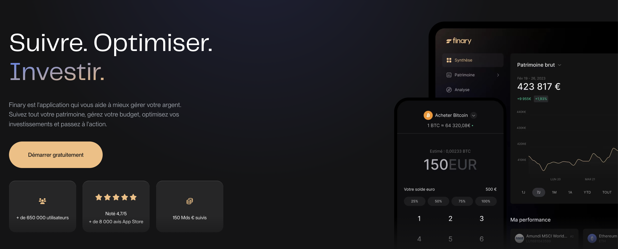 Finary n’est pas une simple application de suivi de dépenses : c’est une plateforme de gestion de patrimoine et de finances personnelles qui a gagné en popularité en France ces dernières années. Fondée en 2020 à Paris, elle permet à ses utilisateurs de centraliser tous leurs comptes, investissements et actifs financiers en un seul endroit — un vrai tableau de bord financier complet.
